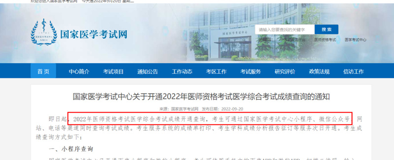 2022 年医师资格考试成绩公布