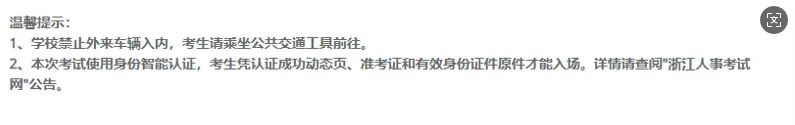 浙江执业药师准考证温馨提示中也明确: 本次考试使用身份智能认证,考生凭认证成功动态页、准考证和有效身份证件原件才能入场 。详情请查阅'浙江人事考试网“公告。
