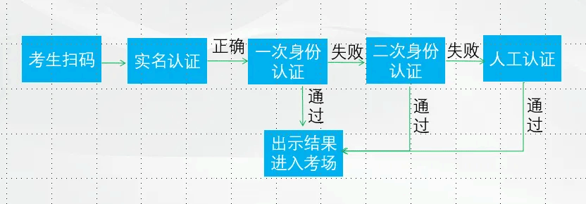 进入考场时需再次向监考出示认证成功动态页面。具体流程见下图: