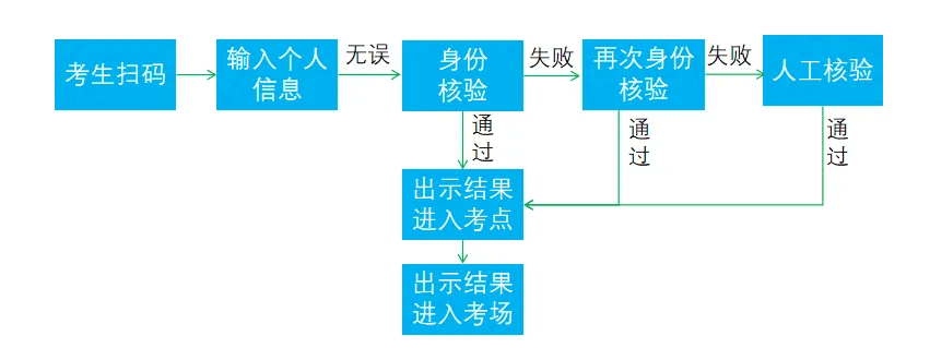 仍无法完成识别的应在考试现场走人工通道请巡考人员或现场保障人员进行身份核验。