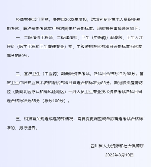 官方发布!2022年卫生资格考试合格线降分通知!