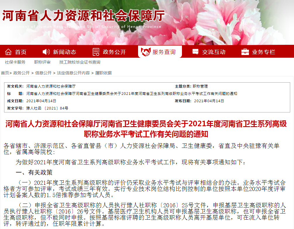 河南省发出关于2021年省直卫生系列高级职称专业技术资格考试的通知!