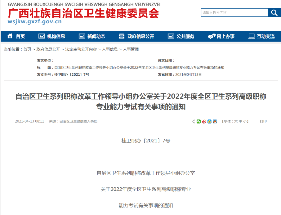 广西省卫生健康委员会发出关于2021年省直卫生系列高级职称专业技术资格考试的通知!