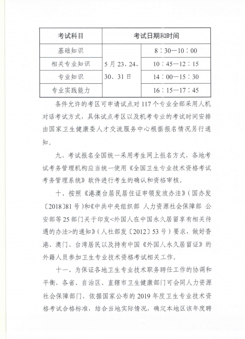 1.2020年卫生专业技术资格考试正式确认为2020年5月23、24、30、31日;